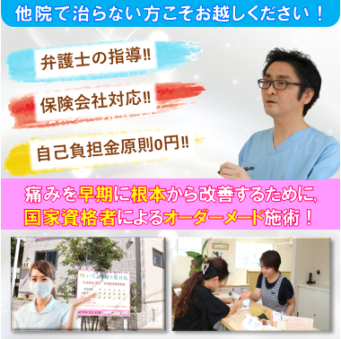 そのため,むちうちにより現れている痛みや違和感をしっかり取り除くためには、むちうちに対する深い知識や高い技術を有している接骨院に行くことが必要となります。